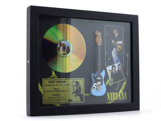 Kurt Cobain Nirvana 3D Frame with Miniature Guitar | Grunge Music Wall Décor Gift India Bluecor